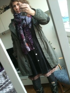 Twiddle hood jacket, Velourette hooded tunic, RAF, Merino leggings från Odd Molly, Hunter stövlar och gosiga sjalen som inte har något namn.